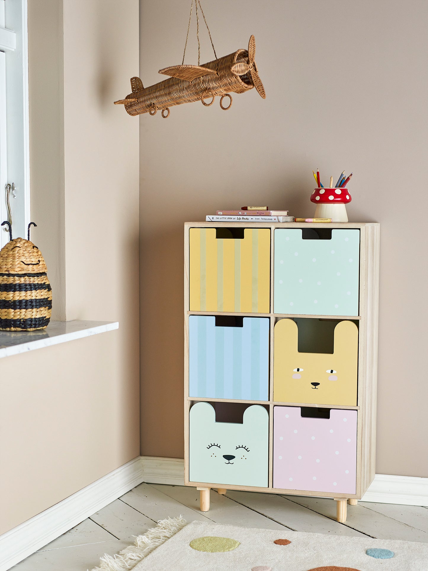 Das Calle Bücherregal mit Schubladen verfügt über ein gemütliches und funktionales Design, das in jeden Raum passt. Die Schubladen des Bücherregals sind umkehrbar, so dass man zwischen der Anzeige von niedlichen Tiermotiven, Mustern oder der einfachen holzfarbenen Seite wählen kann. Dieses flexible Bücherregal kann sowohl vertikal als auch horizontal platziert werden, bietet unzählige Dekorationsoptionen und ermöglicht es dem Calle Bücherregal, sich im Laufe der Zeit an die sich ändernden Bedürfnisse des Hauses anzupassen.