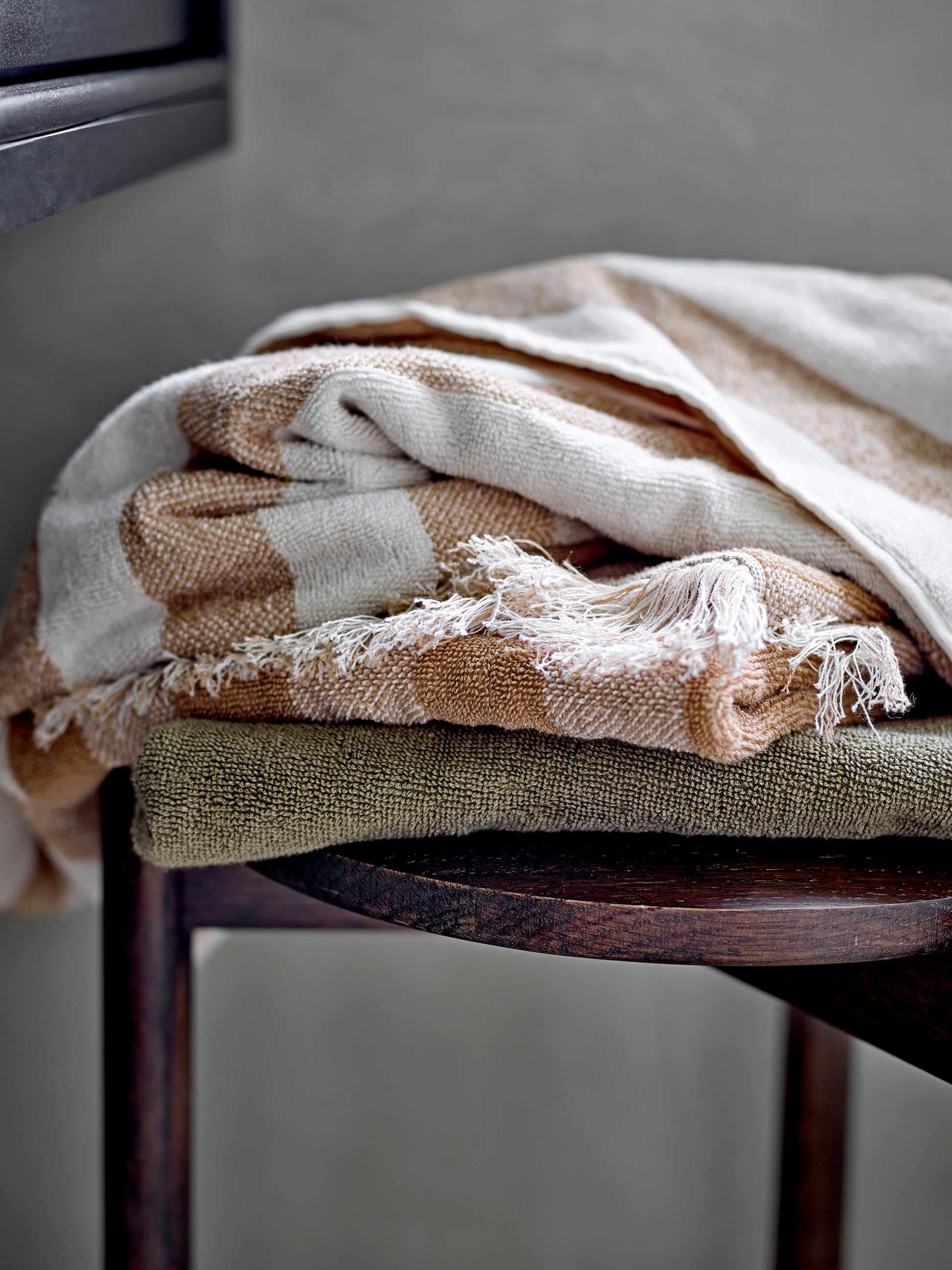Das Handtuch Elaia ist ein wunderschönes Handtuch mit Kontraststreifen und eleganten Fransen in Naturfarben. Das Handtuch ist zu 100 % aus Baumwolle gefertigt und auch in einer größeren Größe erhältlich. Perfekt als Badehandtuch oder Strandhandtuch im Sommer.