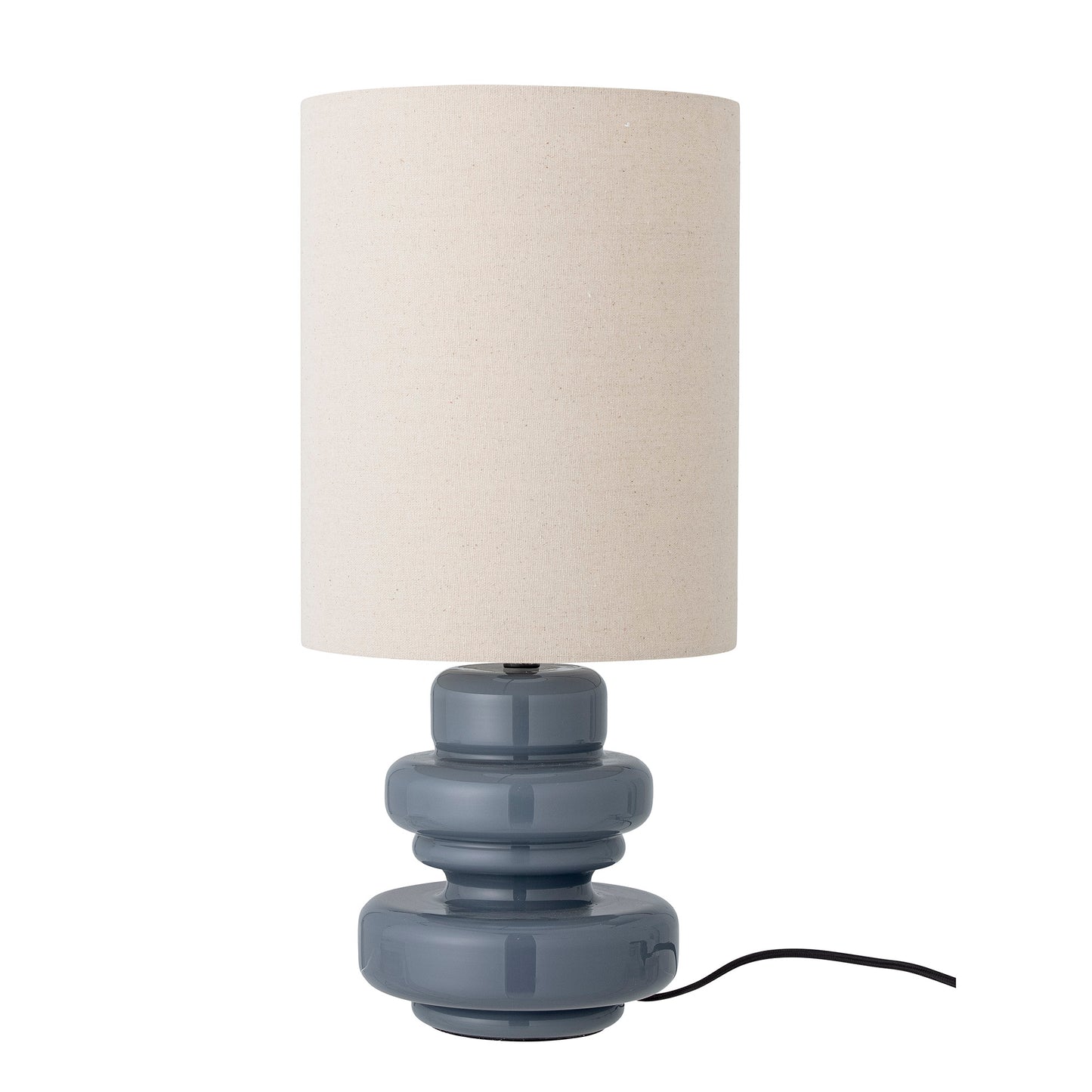 Die Tischlampe Fabiola hat einen Fuß aus blauem Glas in einer schönen gewellten und organischen Form. Sie wird perfekt begleitet von einem schlichten weißen Lampenschirm aus Leinen.